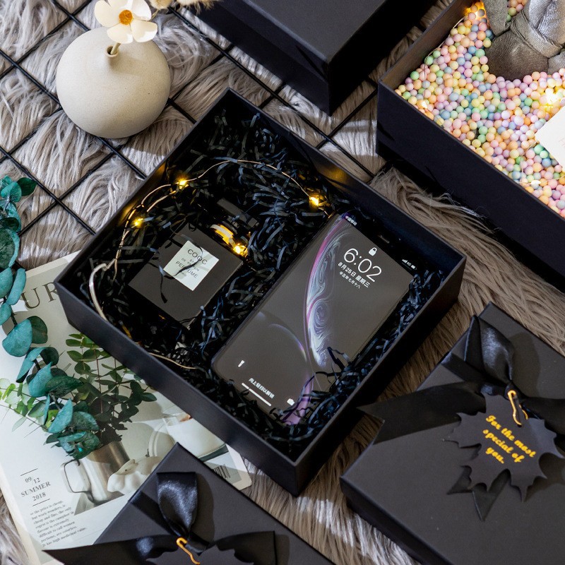 • Black Gift Boxes With Gold Ribbon & Raffia Paper Shreds (3 Sizes) For Sex Toys Luxury Gift Box For Christmas, Birthday, Anniversary