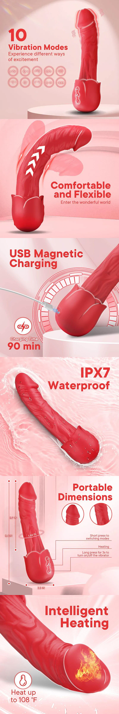 • Flarex - Rose Vibrator, Realistic Dildo With 10 Vibration And Thrusting Modes